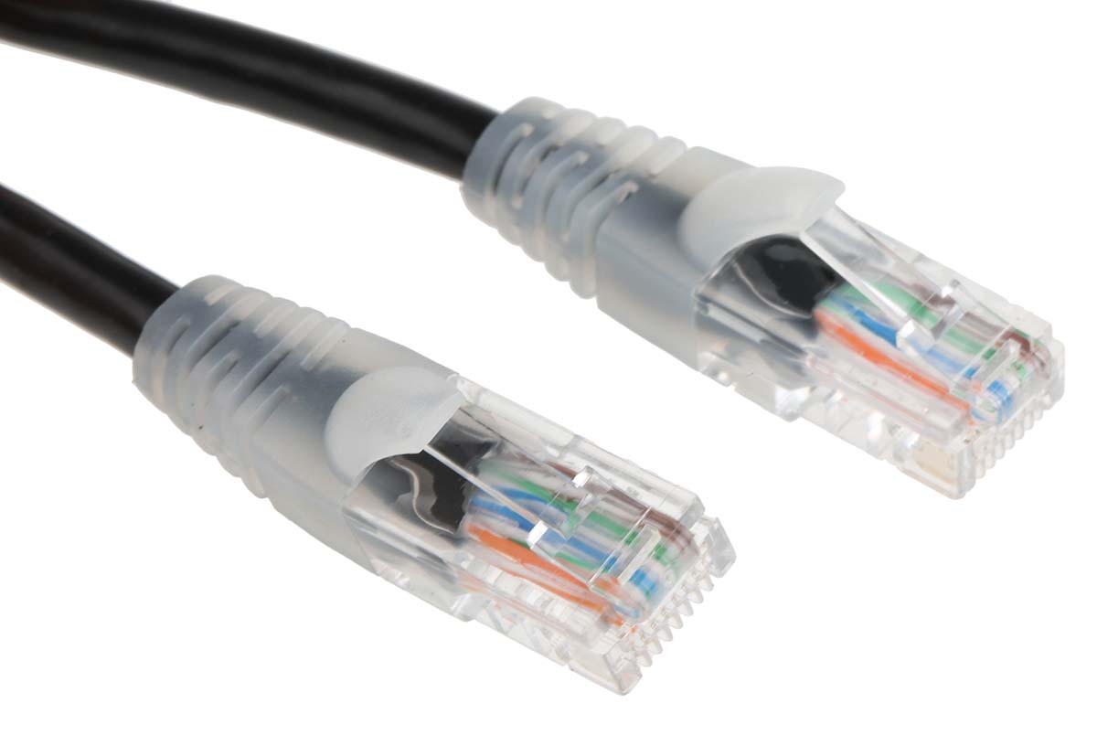 Cavo Ethernet Cat5e (U/UTP) RS PRO, guaina in PVC col. Nero, L. 0.5m, Con terminazione
